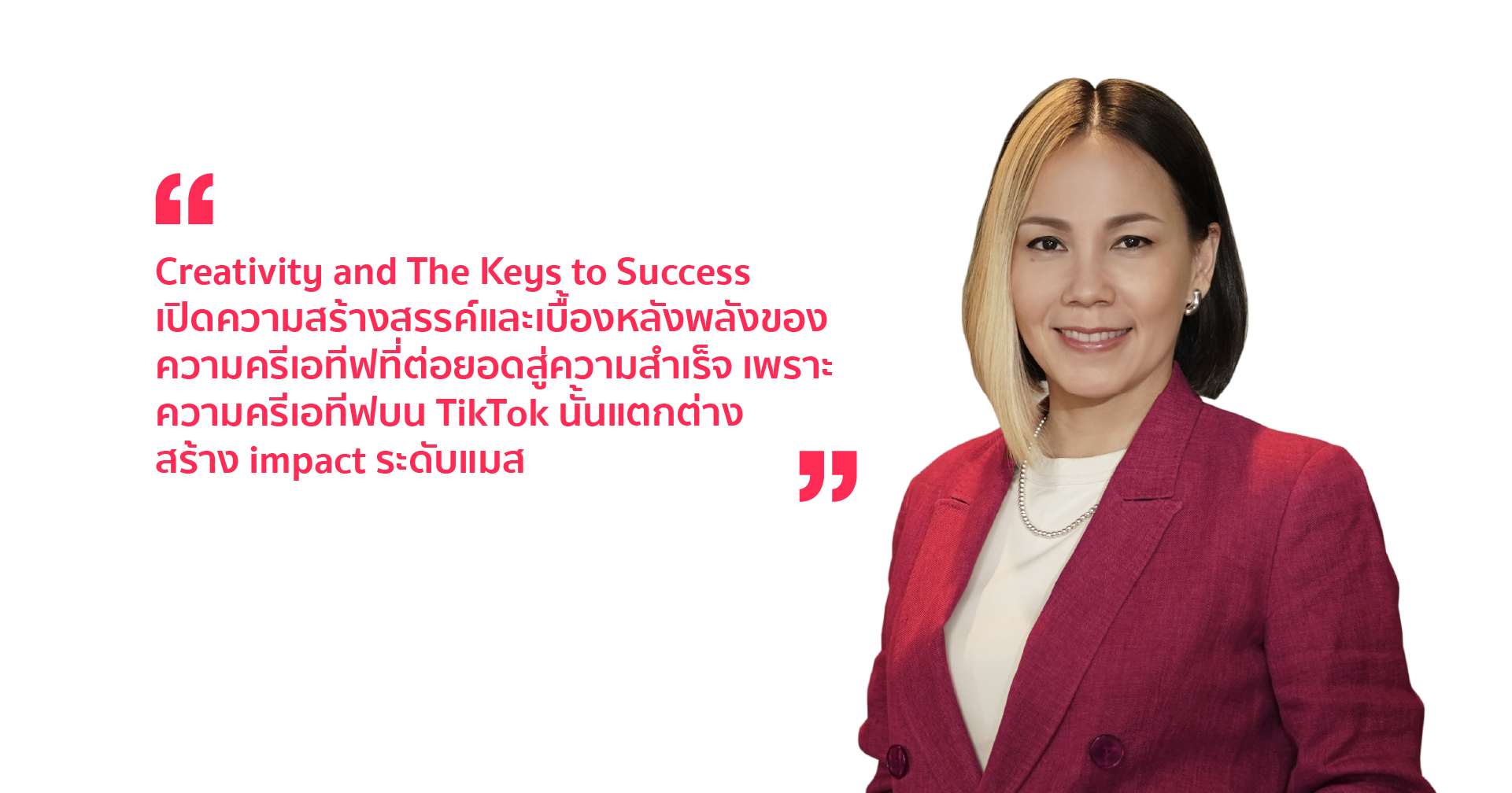 Panel Discussion : Creativity and The Keys to Success - เปิดความสร้างสรรค์และเบื้องหลังพลังของความครีเอทีฟที่ต่อยอดสู่ความสำเร็จ เพราะ ความครีเอทีฟบน TikTok นั้นแตกต่าง สร้าง impact ระดับแมส